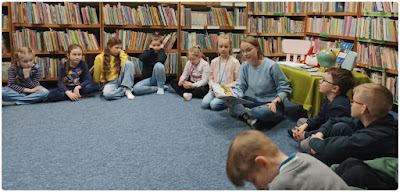 Odwiedziły nas dzieci ze Szkoły Podstawowej nr 34 w Olsztynie, by porozmawiać o tym jak potrzebna do życia jest woda. Zajęcia rozpoczęliśmy od przeczytania opowiadania o czarodziejskiej kropli wody, dzięki któremu dowiedzieliśmy się, jak ważna może być jedna jej kropla i w co może się zamienić. Wiersz Ryba też człowiek autorstwa Agnieszki Frączek przypomniał nam o tym, czego nie powinniśmy robić nad rzeką czy jeziorem. Następnie udaliśmy się do czytelni, która zamieniła się w laboratorium bibliobadaczy. To właśnie tam dzieci mogły skosztować wody, która pomimo tego, że tak samo pachniała i wyglądała, miała inny smak. Sprawdziliśmy też, co się stanie, gdy wlejemy krople oleju czy też atramentu do kubeczka z wodą. Dzięki magicznemu proszkowi, czyli sodzie oczyszczonej, dzieci wykonały kolorowe gejzery. Podczas naszych badań nie zabrakło także rozmów o tym, jak dbać o naszą planetę i oszczędzać wodę.